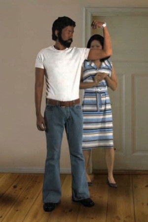 The artist Ming Wong re-enacts scenes from Fassbinder's film "Angst Essen Seele Auf" ("Ali: Fear Eats the Soul") (1973) playing 14 different characters, in German.